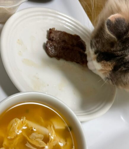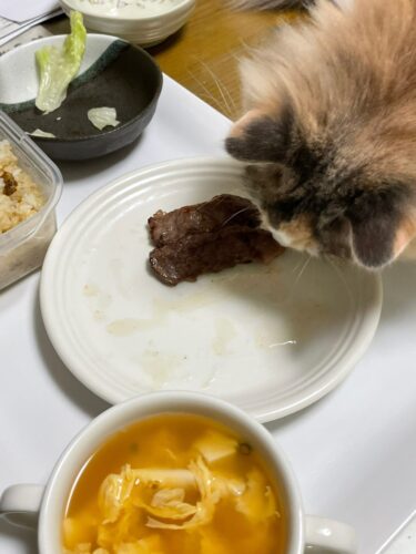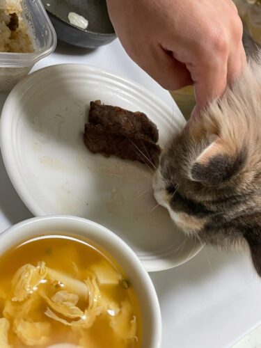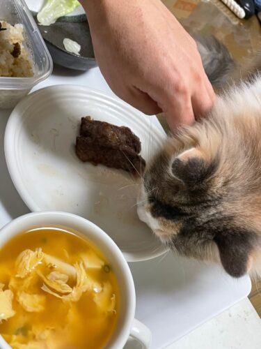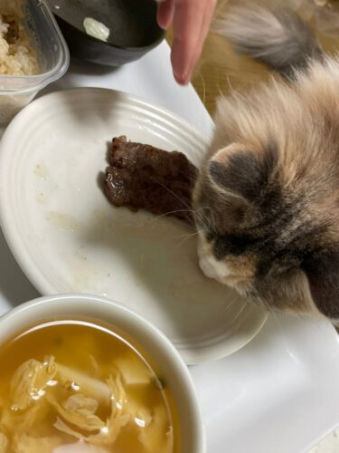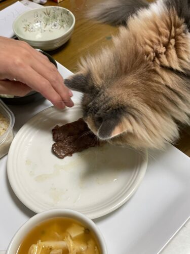 1歳1か月のサイベリアン🐈は人間の食事に興味津々