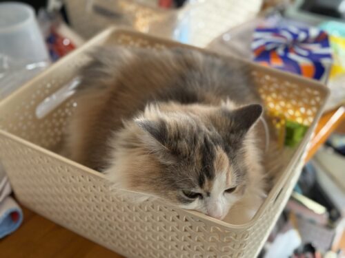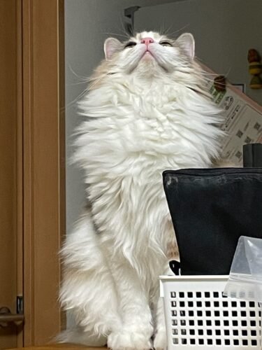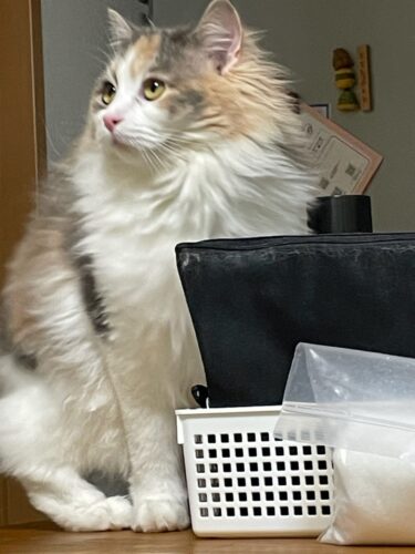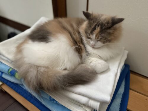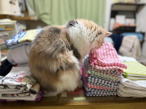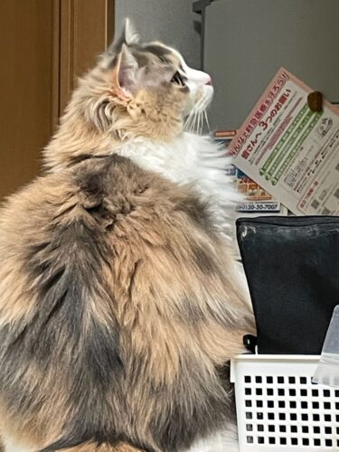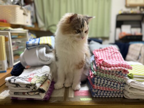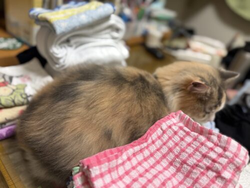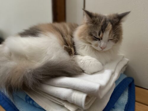 洗濯物をたたんでいると気になるサイベリアンのモカちゃん🐈