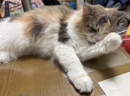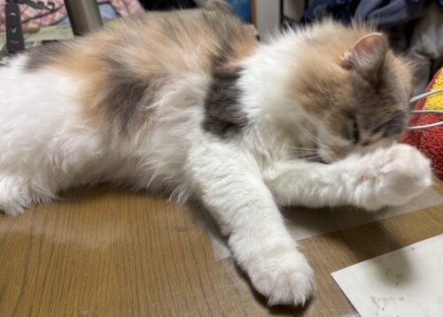ペロペロなでなで顔洗いに夢中のサイベリアン🐈