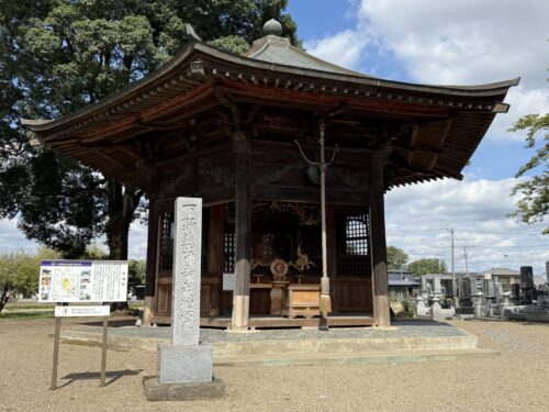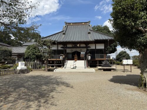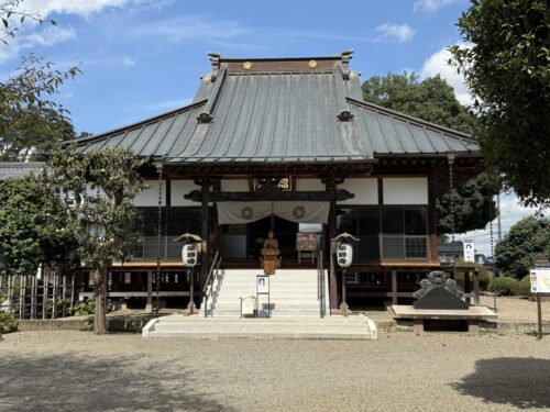 本堂前で