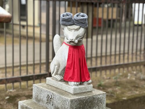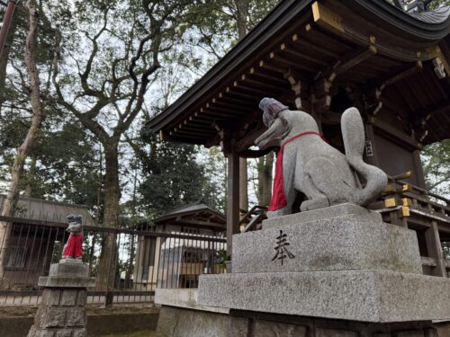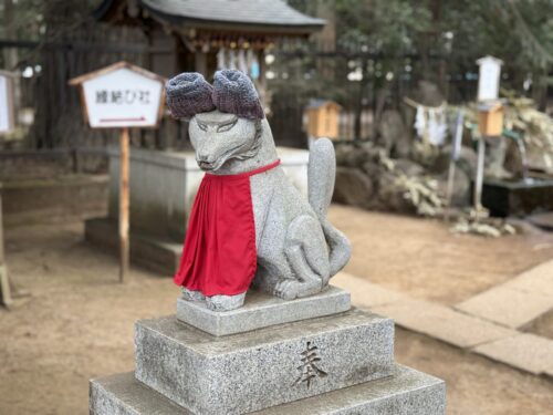 - 優しさにほっこり♪防寒具を付けた稲荷社の狛狐