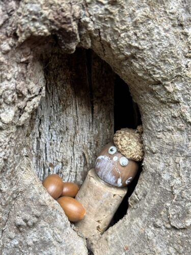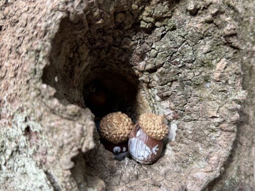 - 大きなムクの木の穴にかわいいどんぐりさんを発見!