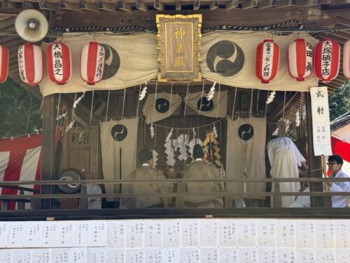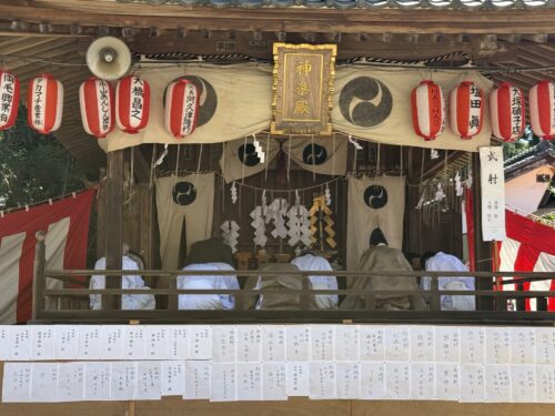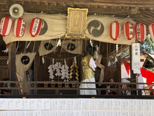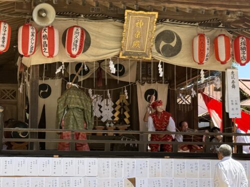 御神楽祭、始まる。後ろ姿がリリしい沼部宮司も舞いを披露!